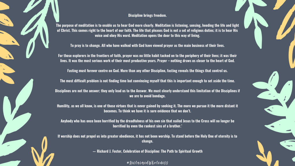 ― Richard J. Foster, Celebration of Discipline: The Path to Spiritual Growth